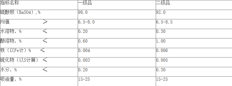 用途: 用作油漆、油墨、塑料、橡胶及蓄电池的原料或填充机,印像纸及铜板纸的表面涂布剂,纺织工业用的上浆剂。玻璃制品用作澄清剂,能起消泡和增加光泽的作用。可作为防放射线用的防护壁材。还用于陶瓷、搪瓷、香料和颜料等行业。也是制造其他钡盐的原料。 硫酸钡因具有化学惰性强,稳定性好,耐酸碱,硬度适中,高比重,高白度,能吸收有害射线等优点,是一种具有保护环境功能的材料,因此广泛用于各种涂料,油墨,医药合成化工,橡胶、造纸、陶瓷、化妆品等领域。精制硫酸钡广泛用于各种涂料(水性、油性及粉末涂料),油墨,造纸,工程塑料(家电外壳、建材塑料),电绝缘塑胶、橡胶制品等的填料。蓄电池的阴极膨胀棒,还可用于制造陶瓷、搪瓷的釉面材料等.。沉淀硫酸钡BaSO4可作为白色涂料,亦可作填充剂用于橡胶与造纸,可增加其重量和光滑程度。沉淀硫酸钡在橡胶、塑料、造纸、油漆、油墨、涂料等行业用作填料、增光剂、加重剂。